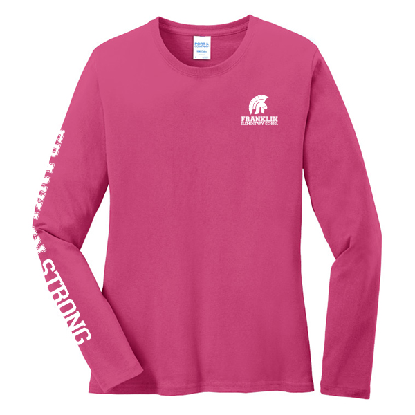 Port & Company Ladies Long Sleeve Core Cotton Tee with Franklin Elementary Logo